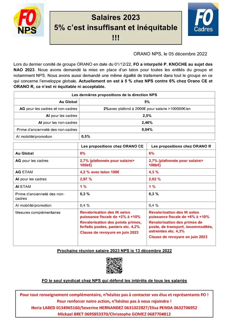 Dans le cadre des NAO 2023, FO Orano considère que les propositions qui seront faites lors des troisièmes réunions doivent être à hauteur de l’attente des salariés qui font face à l’inflation galopante.
