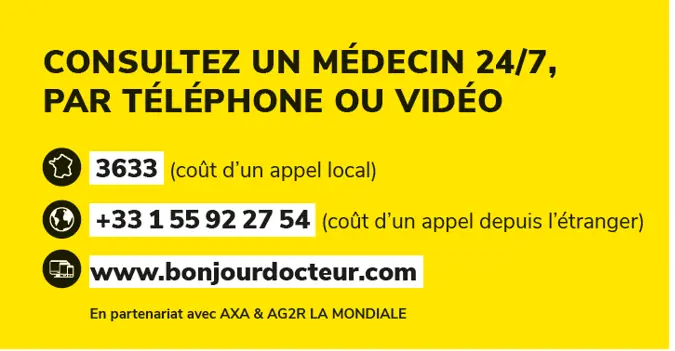 Les vacances scolaires ainsi que les fêtes approchent à grands pas , n'oubliez qu'il existe tout au long de l'année la téléconsultation médicale, c’est un accès aux soins simple et gratuit partout dans le monde 7 jours sur 7 et 24 heures sur 24 ! Un coup de fil et vous êtes mis en relation avec un médecin.