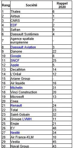 CLASSEMENT 2021 DES ENTREPRISES PRÉFÉRÉES DES JEUNES INGÉNIEURS